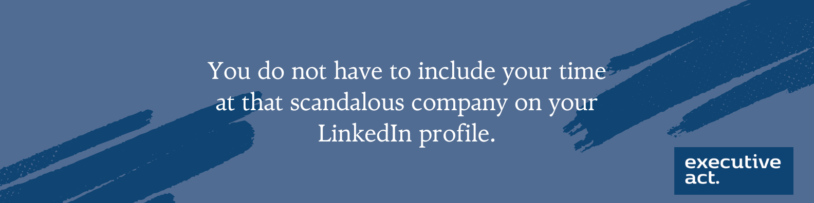 Because LinkedIn is searchable and also ranks high in Google results, if you list a company that has been involved in a scandal (not just as an employer, but even as a client), you also risk having your name turn up for reporters when they are working on a story about the company or someone who worked there at the same time.